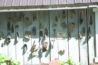 This is the Lost Shoe Wall. Humorous yet freaky! I'll explain! Since I was young I have hated seeing a random shoe along the roadside. It creeps me out, because I think, "where's the body that belongs with that shoe?" It all started when I saw a Stephen King movie where a child gets hit by a semi truck and all you see is a shoe fly through the air.